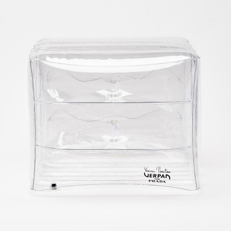 Eine klare und kräftige Farbigkeit mit dem skulpturalen Charakter seiner Möbel ließen eine psychedelisch anmutende Wohnwelt erscheinen. Gerne experimentierte er mit modernen Materialien, Kunststoffen und Plastik. Seine Lust an der Innovation kommt vor allem bei seinen aufblasbaren Möbeln zum Ausdruck. Der sogenannte "Inflatable Stool" wurde nun in einer Kooperation mit Prada neu aufgelegt – ein absolutes Muss für jeden Designinteressierten und Sammler! Darüber hinaus werden weitere bekannte Möbelentwürfe, Teppiche und Lichtobjekte in einer umfangreichen Ausstellung präsentiert.